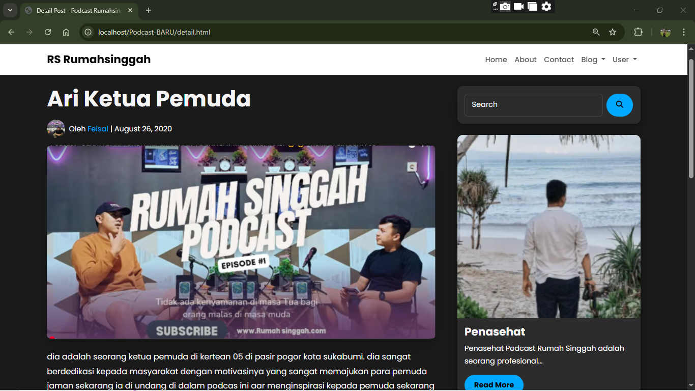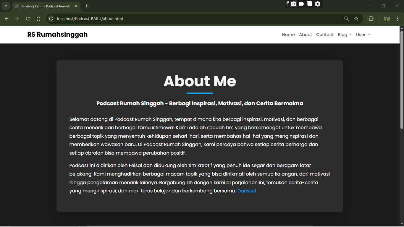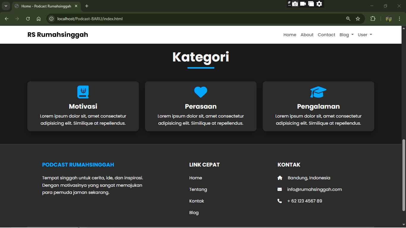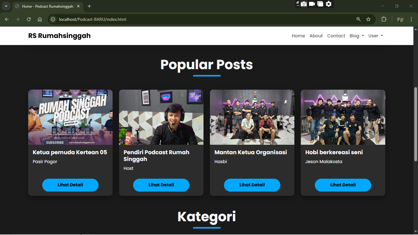Website Blog Rumah Singgah merupakan platform berbasis web yang dirancang untuk menjadi ruang berbagi cerita, inspirasi, dan refleksi kehidupan sehari-hari. Blog ini terinspirasi dari konsep “rumah singgah” — tempat di mana setiap orang bisa berhenti sejenak untuk membaca, merenung, dan menemukan semangat baru. Melalui tampilan yang sederhana namun hangat, website ini menghadirkan berbagai konten menarik seperti kisah motivasi, pengalaman pribadi, pembahasan ringan seputar kehidupan, serta pandangan inspiratif dari berbagai sudut. Dengan desain yang ramah pengguna dan navigasi yang mudah, Blog Rumah Singgah bertujuan menjadi wadah positif yang menemani pengunjungnya di setiap momen istirahat dari hiruk pikuk dunia digital.